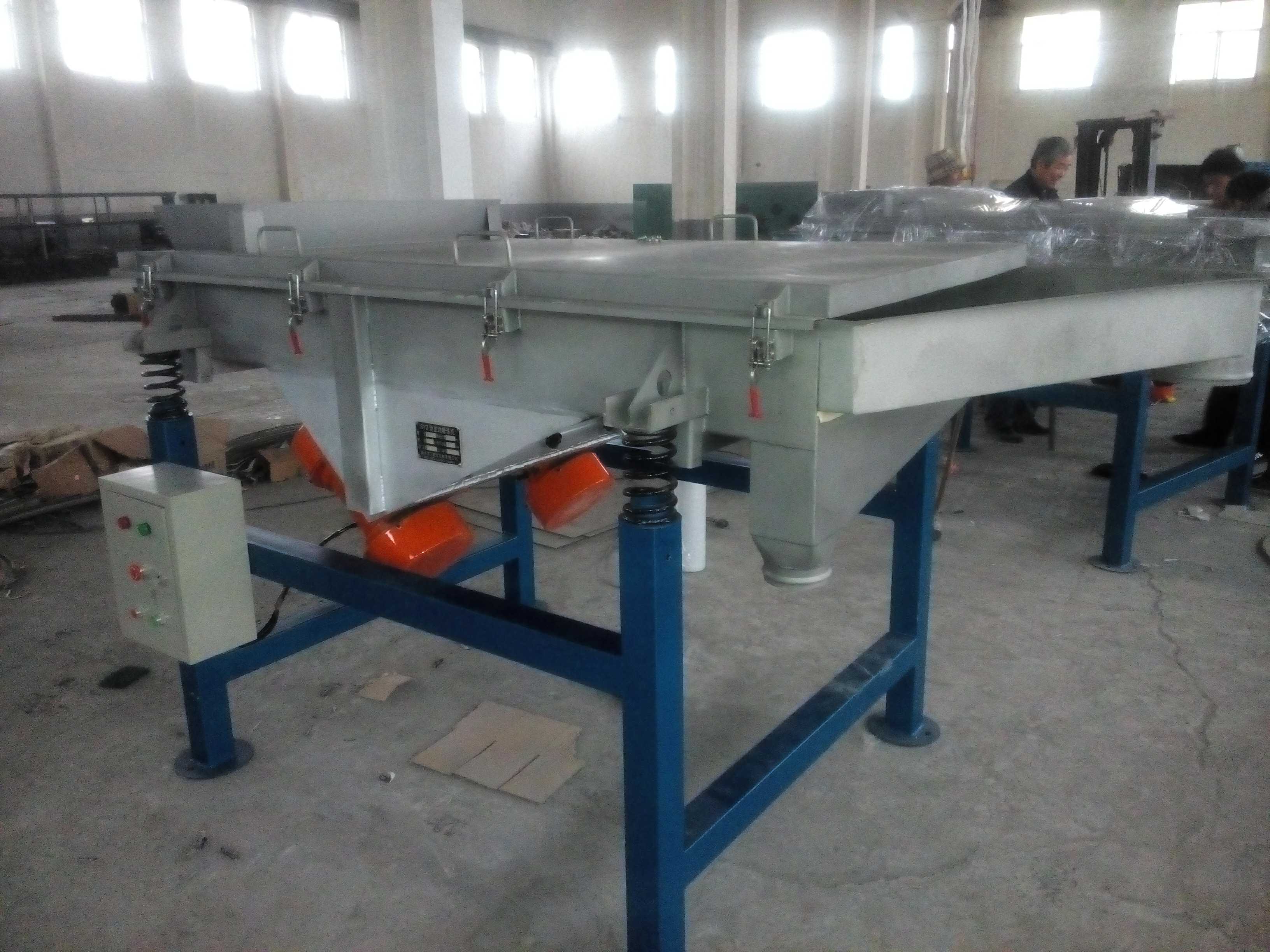 直線振動篩工作原理 直線振動篩為雙振動電機驅動。當兩臺振動電機做同步、反向旋轉時,其偏心塊所產生的激振力在平行于電機軸線的方向相互抵消,在垂直于電機軸的方向疊為一合力,因此篩機的運動軌跡為一直線。兩電機軸相對篩面在垂直方向有一傾角,在激振力和物料自重力的合力作用下,物料在篩面上被拋起跳躍或向前作直線運動,從而達到對物料進行篩選和分級的目的。適用于粒度在0.074—5mm,含水量小于7%,無粘性的各種干式粉狀或顆粒狀物料的篩分。大給料粒度不大于10mm.。 直線振動篩圖紙 工作特點 該產